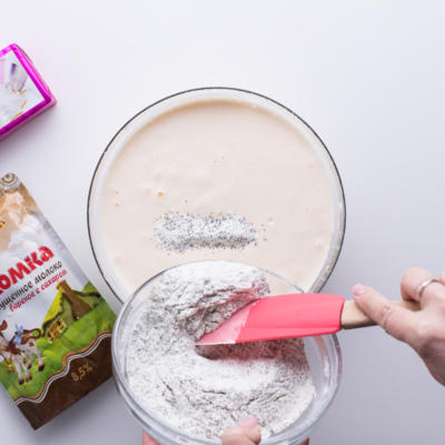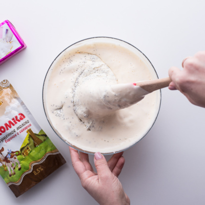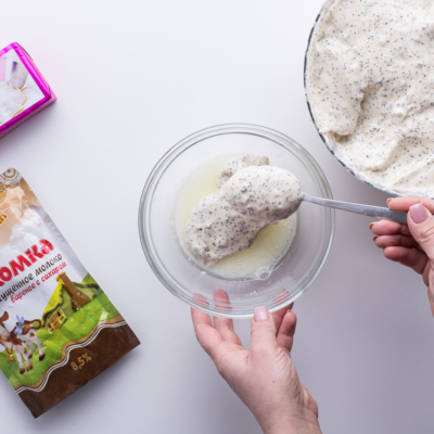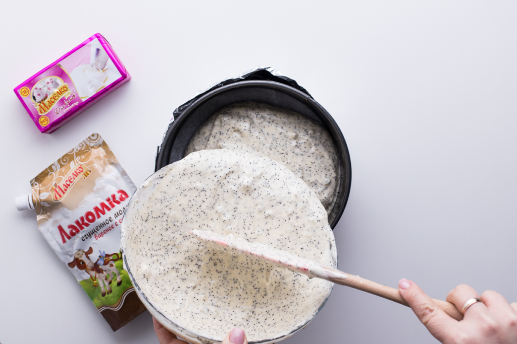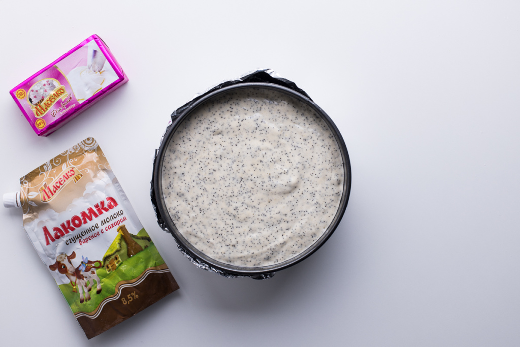 Пошаговый фоторецепт: маковый бисквит с кремом из вареной сгущенки