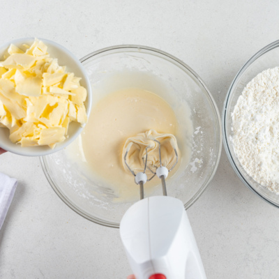 В масляную массу в несколько подходов добавить мучную смесь и замесить мягкое, гладкое тесто.