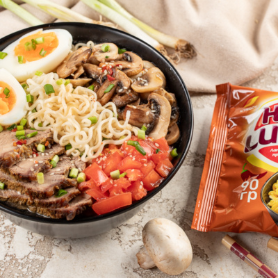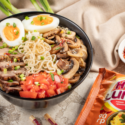 Пикантный и сытный рамен с ароматным бульоном и сочным мясом – простой способ сделать лапшу быстрого приготовления еще вкуснее.