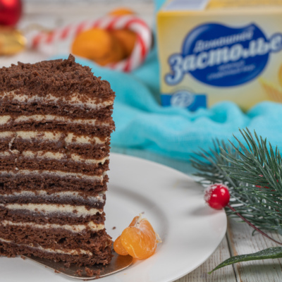 Тончайшие медовые коржи с шоколадным послевкусием, пропитанные сметанно-сливочным кремом, точно не оставят вас равнодушными!