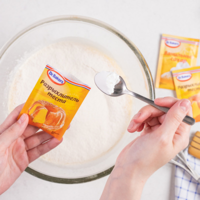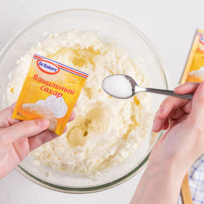 В рецепте мы использовали продукцию Dr. Bakers — это новое имя наших любимых ингредиентов для выпечки Dr. Oetker. У бренда изменилось только название, а качество осталось на том же высоком уровне. Дизайны упаковок тоже остались прежними, поэтому вы легко сможете найти продукцию Dr. Bakers на полке в магазине.