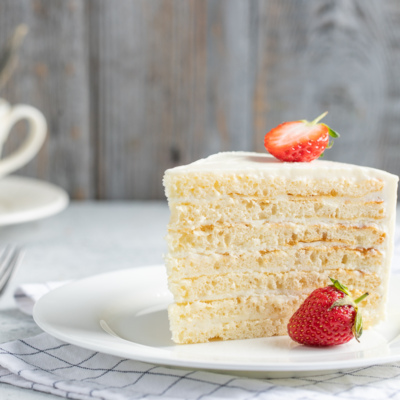 «Молочная девочка» — это нежный воздушный торт из тонких коржей на сгущенном молоке и сливочного крема. Этот рецепт не займет много вашего времени и усилий, зато результат порадует всех. Нежные, мягкие коржи в сочетании с кремом из творожного сыра и сгущенки, по вкусу напоминающего сливочное мороженое — перед этим тортом устоять невозможно!