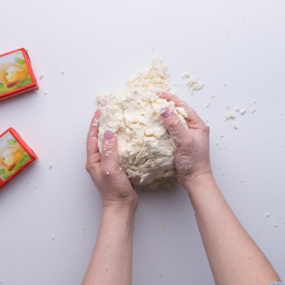 Сначала ложкой, а потом руками замесить тесто и собрать его в шар.