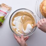 Полученную смесь переложить во взбитые сливки и перемешать крем легкими движениями.