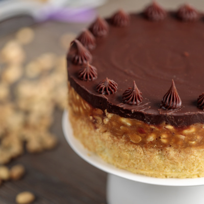 Торт «Сникерс» – настоящий подарок любителям арахиса и шоколада. Красивый, высокий и очень эффектный, он станет настоящим украшением праздничного стола.
