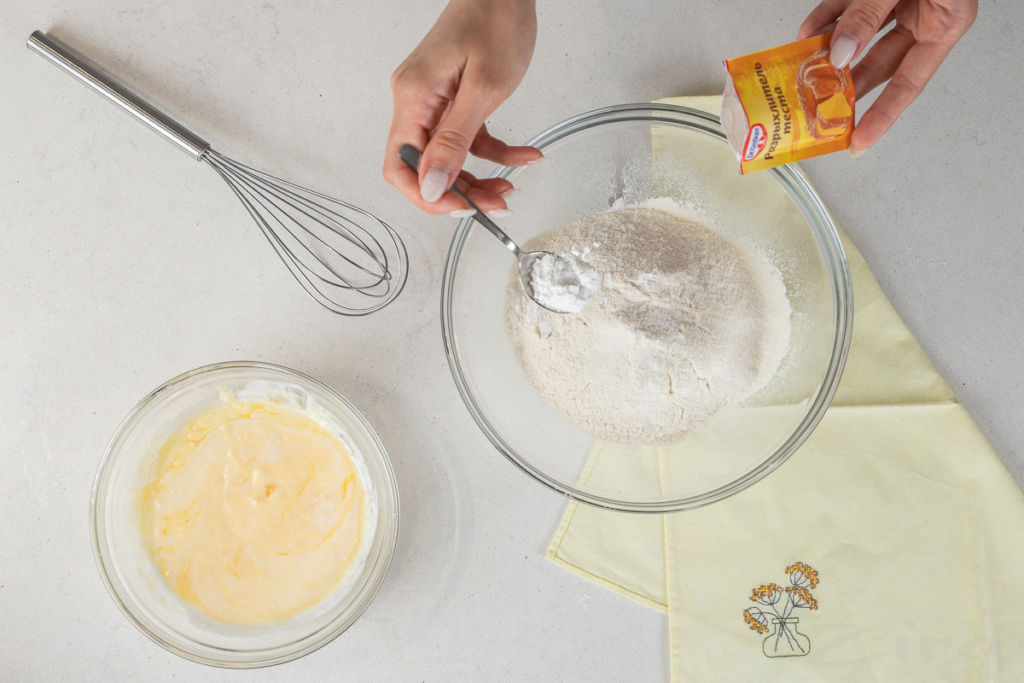 Кефир, растопленное сливочное масло, яйцо смешать до однородности.