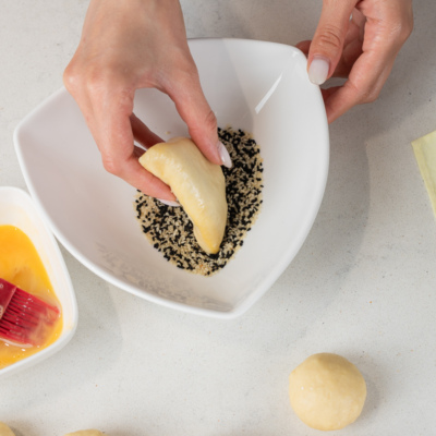 Отстоявшееся тесто разделить на 12 равных частей (примерно по 40-45 грамм).