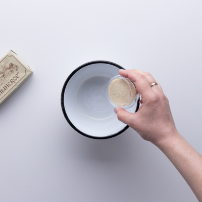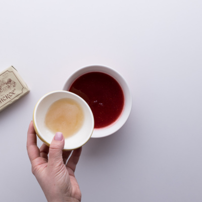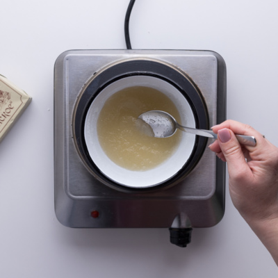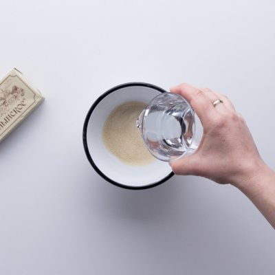 6 граммов желатина замочить в 3 столовых ложках воды и оставить для набухания минут на 20.