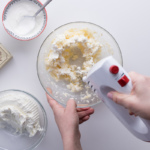 Посмотрите пункт 7. В полученную массу, продолжая взбивать, добавить в три приема творог и 300 граммов сметаны.