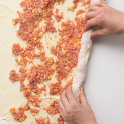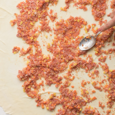 Самое главное в этом блюде — это очень тонко раскатать тесто, рецепт которого есть тут.