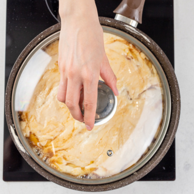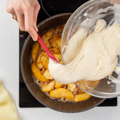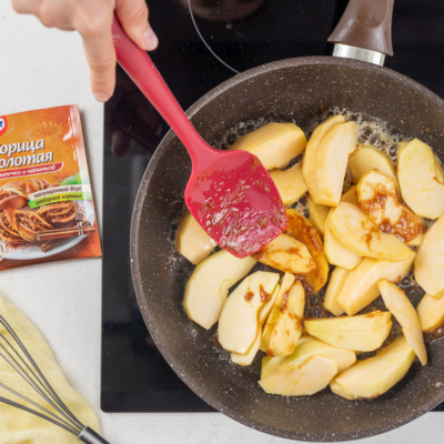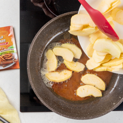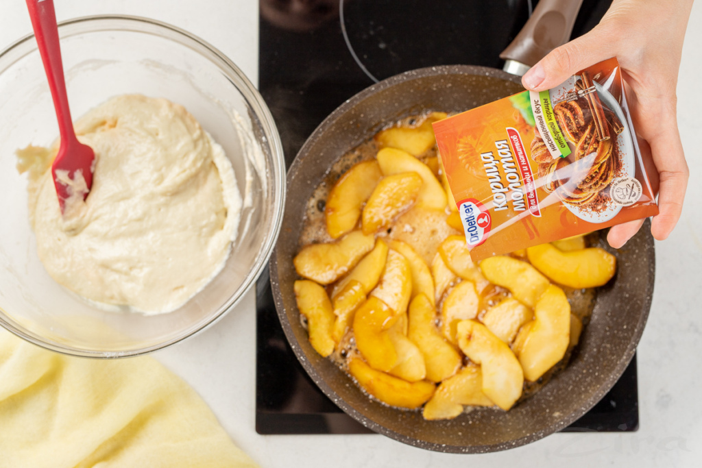 Пошаговый фоторецепт: яблочный пирог с карамелью на сковороде