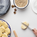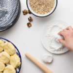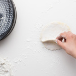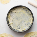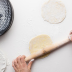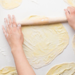 Каждый пласт вновь обильно промажьте крахмалом, сложите их один на один и раскатайте максимально тонко.