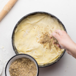 Накрыть оставшимися 12 (6) слоями теста, последний слой теста растяните и накройте им все изделие.