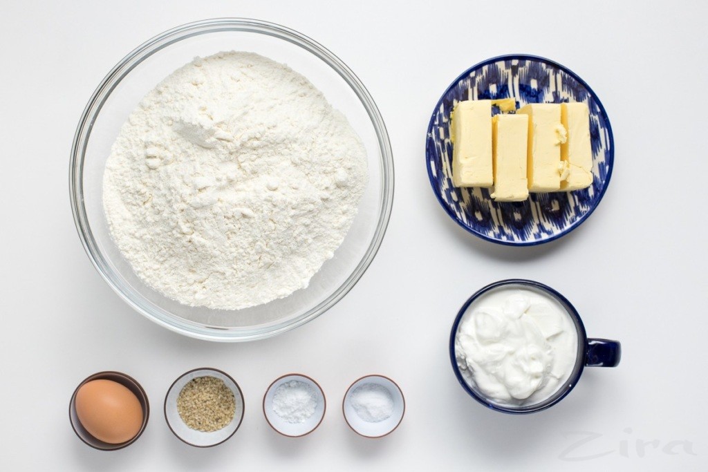 Смазать самсу желтком, посыпать кужутным семенем и отправить в духовку, разогретую на 180 С на 35 минут.