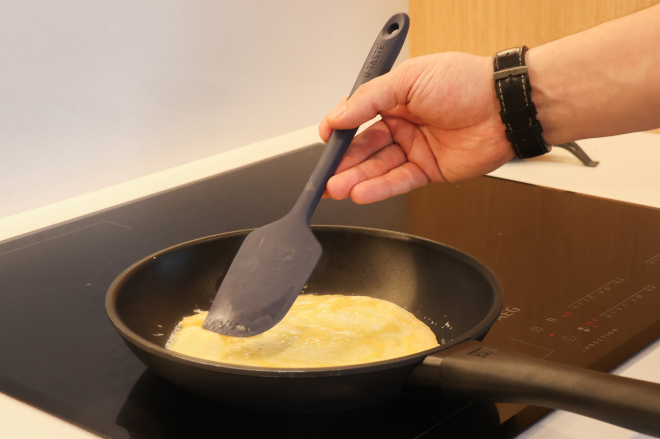 На сковороде выпечь тонкие яичные блинчики (3–4 штуки), остудить.