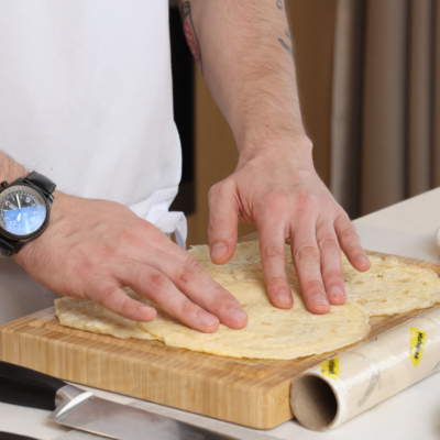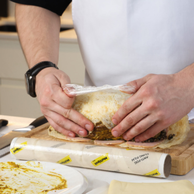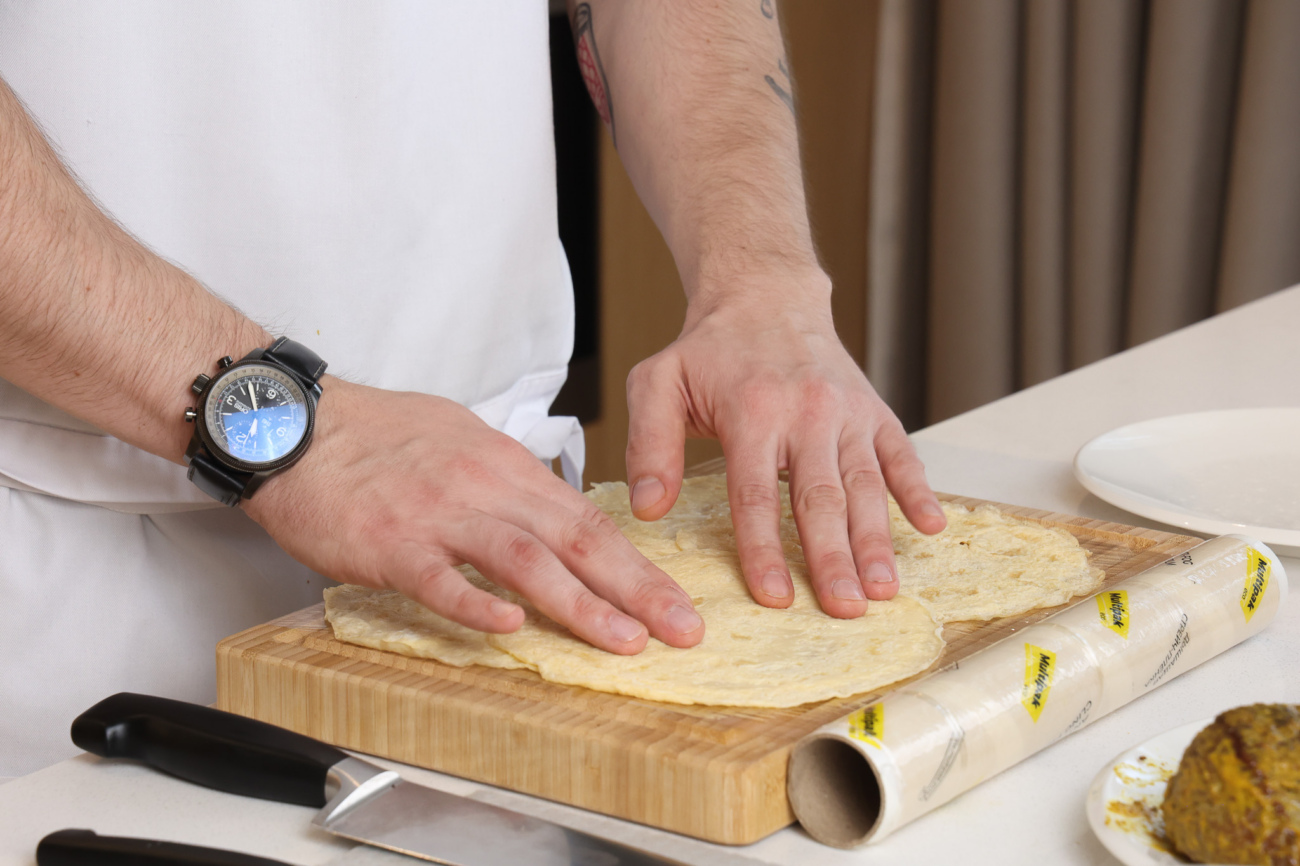 Рабочую поверхность застелить пищевой пленкой.