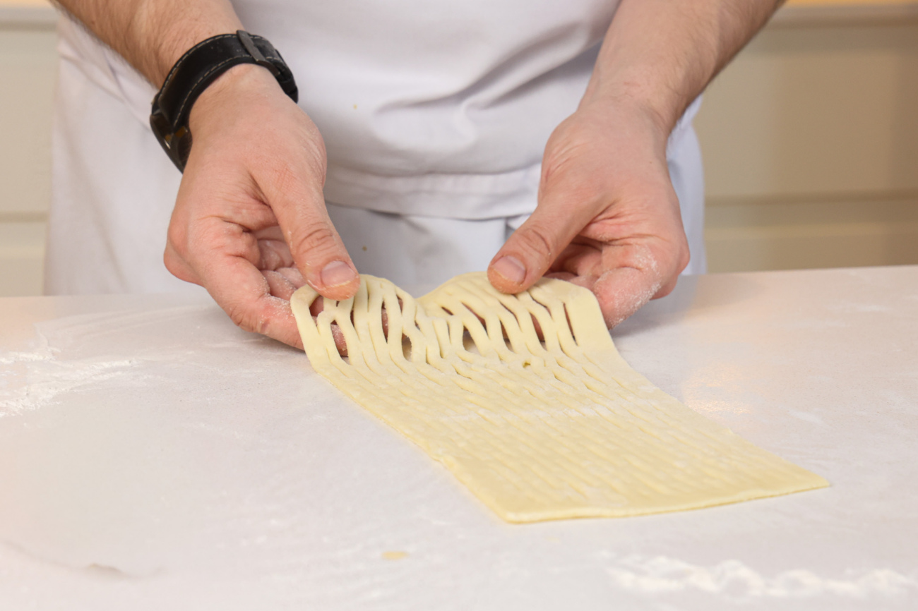 На второй половине сделать надрезы с помощью специального ролика или ножа.