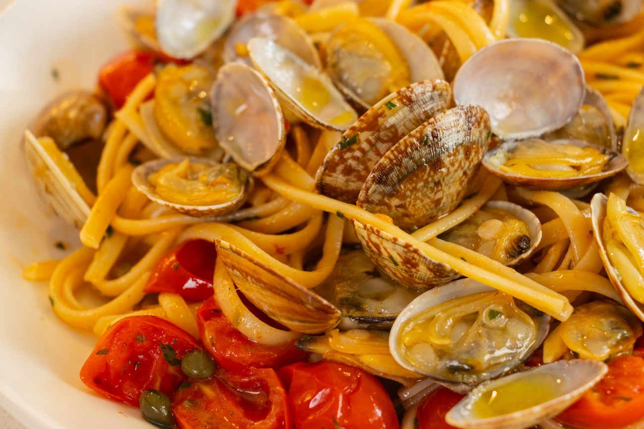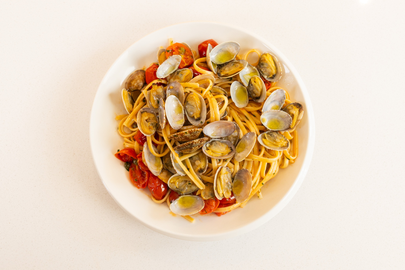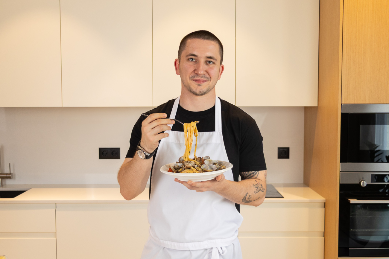 Мы продолжаем готовить с шефом Никитой Бычковым — сегодня на столе паста лингвини с вонголе. Южноитальянская классика с ароматом чеснока и тимьяна, свежестью лимона и петрушки, нежным сливочным соусом и щедрой порцией морских моллюсков. Простое в приготовлении, но очень эффектное блюдо для домашнего ужина.