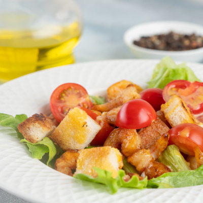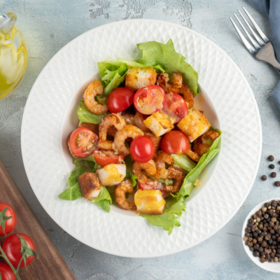 Бесподобно вкусный, на скорую руку, праздничный и яркий салат. Салат «Цезарь» с креветками идеален для романтического ужина.