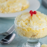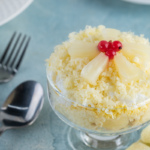 Сверху выложить кусочки ананаса и покрыть тертым сыром.