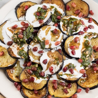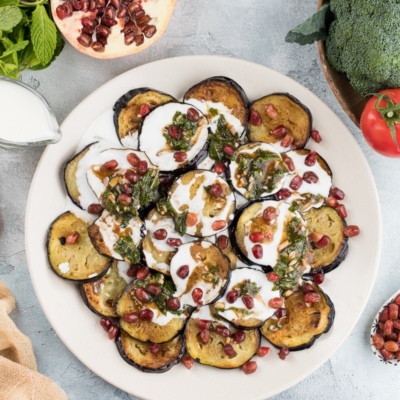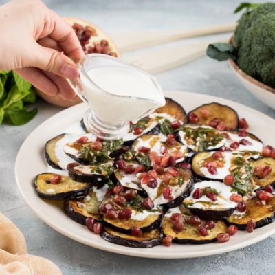 Салат с баклажанами с гранатово-йогуртовой заправкой