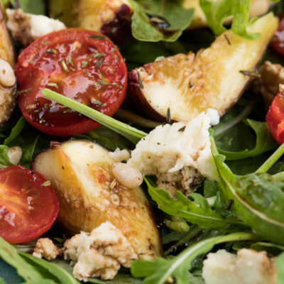 Безумство красок вкусов и ароматов в одной тарелке. За 10 минут можно приготовить потрясающий салат: пряный, с нотками бальзамика, дополненный вкусами сыра и орешков — оторваться невозможно!