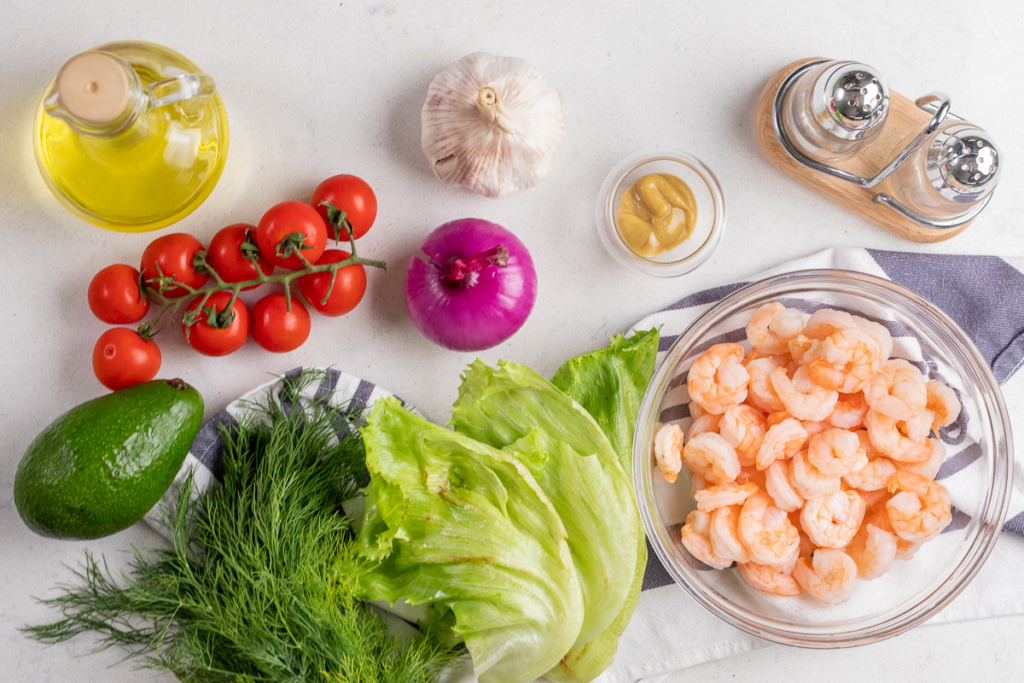 Простой и освежающий салат из свежих овощей с креветками. Рецепт несложный и быстрый. Салат готовится из простых свежих овощей, которые гармонично сочетаются между собой.