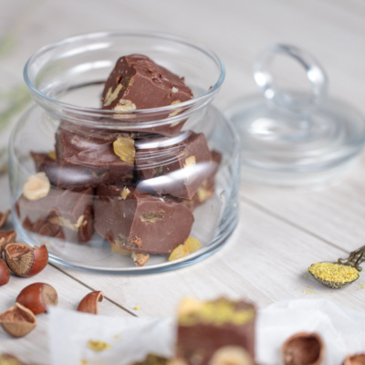 Фадж можно готовить с фундуком, миндалем, грецкими орехами, не возбраняется добавлять в шоколадную массу кусочки печенья,цукаты и сухофрукты.
