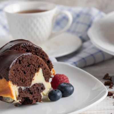 Отличное решение, если вы не можете выбрать, что приготовить кекс или чизкейк. Шоколадный кекс с нежной творожной начинкой станет приятным дополнением к чашечке чая или кофе.