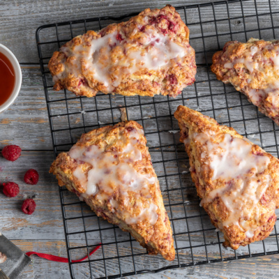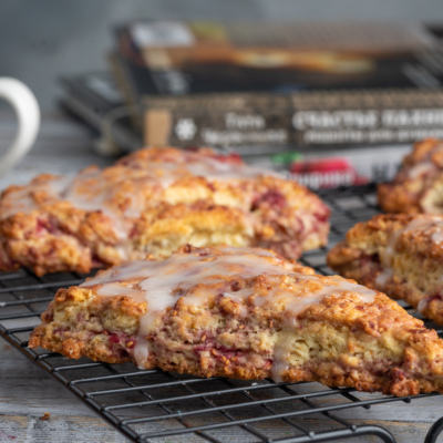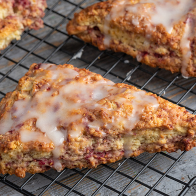 Перенести сконы на решетку для охлаждения. Пока булочки еще теплые, сбрызнуть каждую чайной ложкой глазури. Дать им остыть, пока глазурь полностью не застынет, около 30 минут.