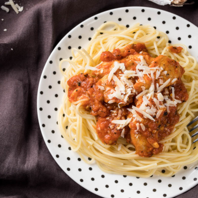 Любителям итальянской кухни посвящается — спагетти с курицей в густом томатном соусе. Сытный и очень вкусный ужин всего за пол часа!