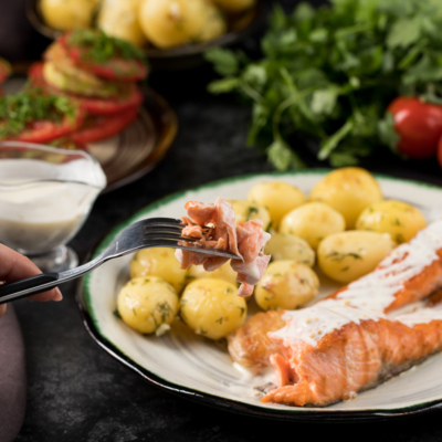 Для этого рецепта вы можете купить готовые нарезанные стейки, просто филе (мы использовали именно филе), либо рыбу целиком.