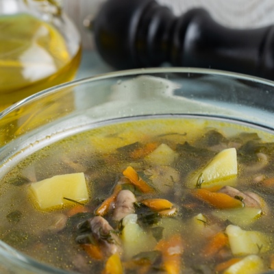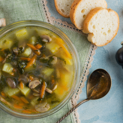 Суп со шпинатом и грибами