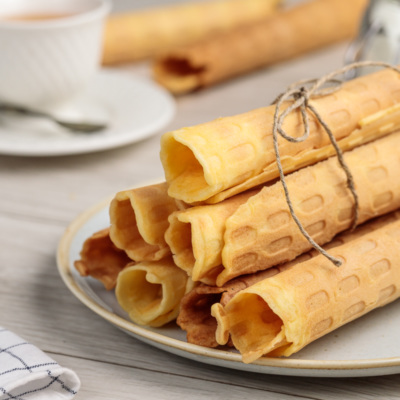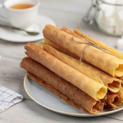 Обычно тонкие вафли выпекаются для последующего наполнения кремами, вареной сгущенкой или другими сладостями.