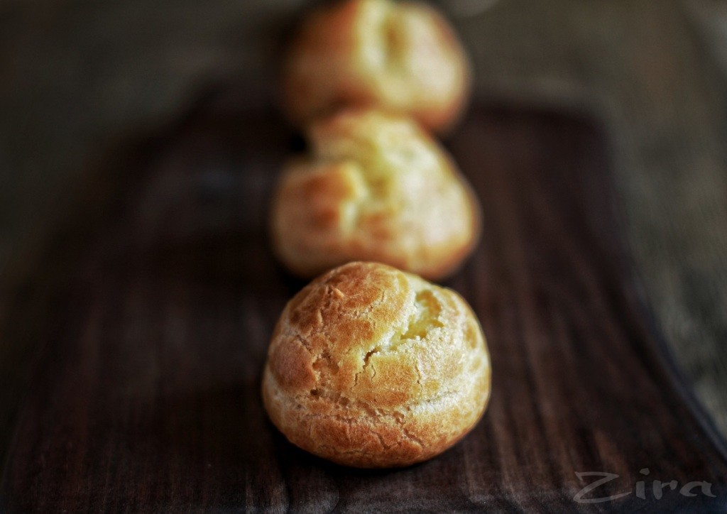 В донышках профитролей сделать небольшие отверстия, заполнить их кремом.