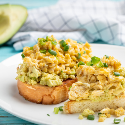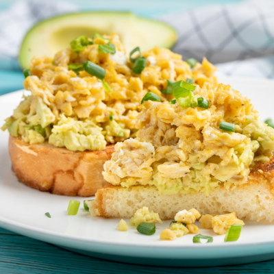 Вкусные, хрустящие и довольно быстрые в приготовлении тосты с авокадо и  яйцами скрэмбл. Это отличный вариант питательного завтрака или красочного перекуса на скорую руку.