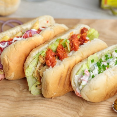 Хот-доги — это отличная идея для перекуса в дороге, закуска для веселой вечеринки и вариант для пикника. Начинкой для хот-догов могут быть не только сосиски.