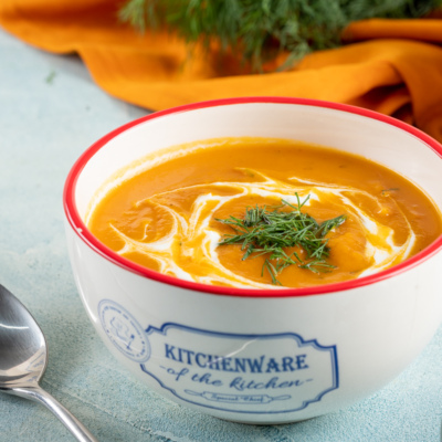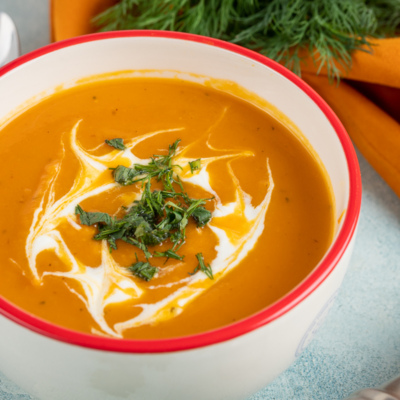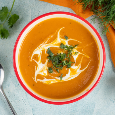 При всей простоте приготовления суп получается с очень насыщенным тыквенным вкусом, сбалансированный специями. Приготовить такой суп лучше на курином бульоне, на нём суп получается вкуснее, но можно приготовить его и на воде, тогда это будет постный вариант, так как в этот суп не добавляется ни молоко, ни сливки.