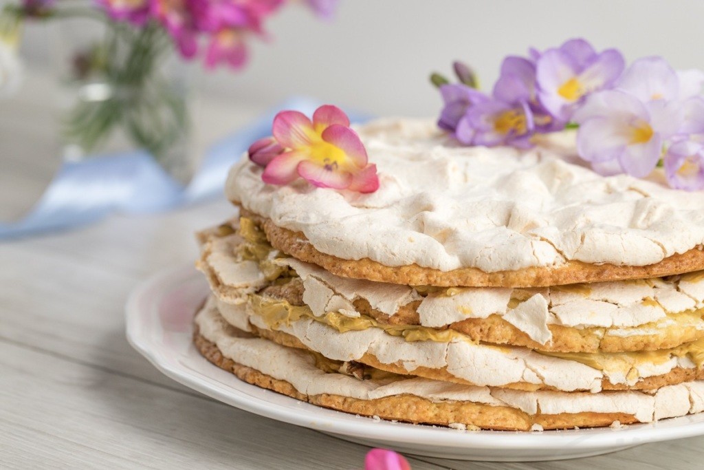 Сахар добавить по желанию, так как меренга и крем очень сладкие.