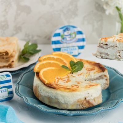 У вас осталось 8-10 блинчиков из большой стопки, а съесть их просто так кажется очень скучно. Предлагаем превратить их в чудесный пирог с творогом.