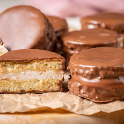 Домашний десерт «Чоко-пай» с нежным бисквитом и воздушным суфле не уступает по вкусу готовому из магазина.