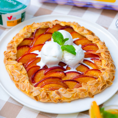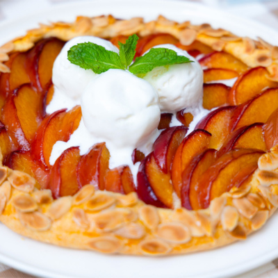 Легкий летний десерт с сочными персиками и шариком мороженого. Галета получается нежной, ароматной и по-домашнему уютной.