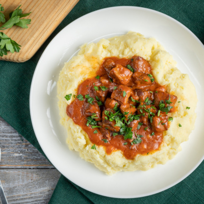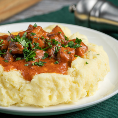 Гуляш с картофельным пюре — сытное и питательное блюдо из простых ингредиентов. Ваши домочадцы непременно оценят такой вкусный обед или ужин, блюдо из детства.