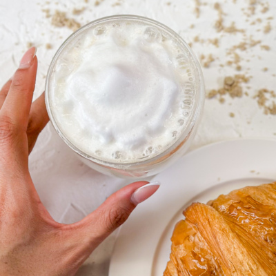 Отдельно взбить молоко для пенки (по желанию).