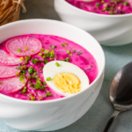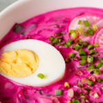 В жаркие летние дни холодный суп на кефире как раз то, что нужно! Холодник и насыщает, и освежает одновременно, а готовится блюдо совсем недолго, если заранее отварить свеклу и яйца.