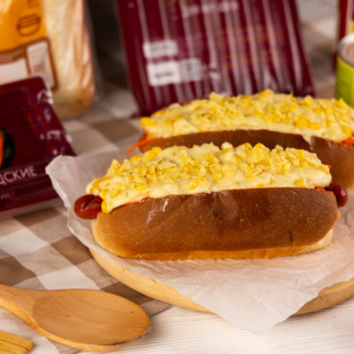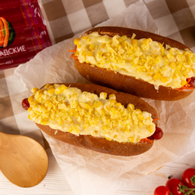 Сочная куриная сосиска, расплавленный тягучий сыр и сладкая кукуруза — такой хот-дог съедается быстрее, чем готовится.