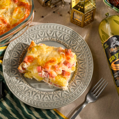 Картофельная запеканка — проверенная классика, которая всегда выручает, особенно на ифтар. Стоит добавить колбасу «Zaytun» Andalus с оливковым маслом, и привычное блюдо заиграет новыми оттенками вкуса.
