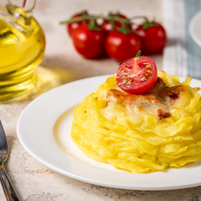 Из простой картошки и мясного фарша можно приготовить интересное блюдо — картофельные корзиночки. Блюдо совмещает в себе мясо и гарнир и получается сытным, вкусным и очень красивым — корзиночки можно подать и на праздничный стол.