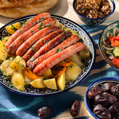 Для уютного ифтара — сочные колбаски с овощами. Вкусное и ароматное блюдо, которое собирает близких за одним столом.