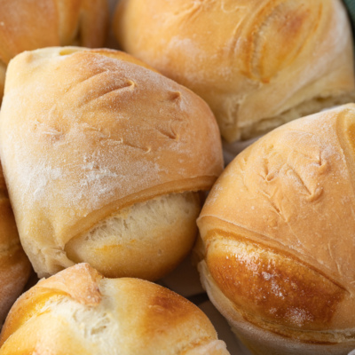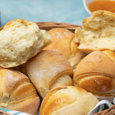 Хлеб получается нежный, с хрустящей корочкой, его удобно делить на кусочки и подавать к столу. А еще его можно использовать в качестве булочки, делать сэндвичи или просто есть со сладким джемом.
